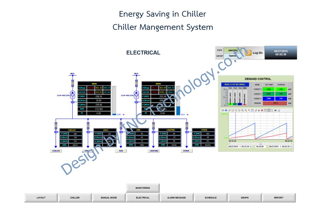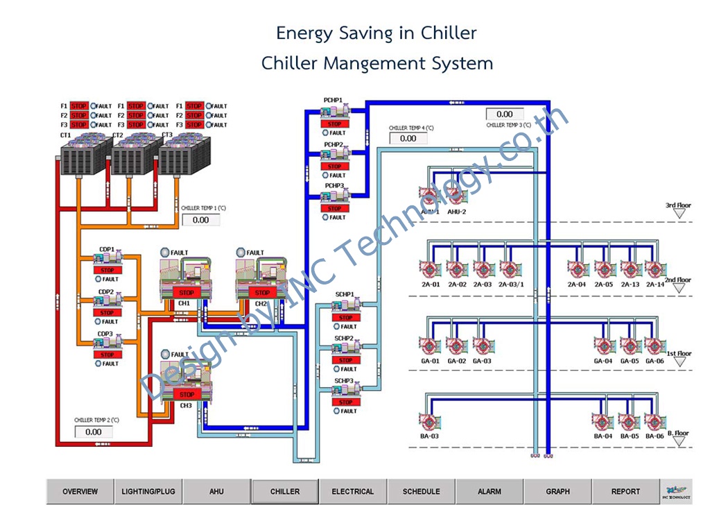 The system can monitor and control the operation of equipment such as Chiller, Cooling Pump, Cooling Fan, CHP, CDP Pump as well as AHU.